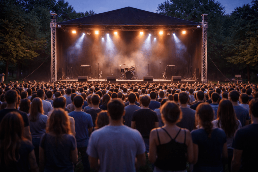 - Koordynacja występu w dniu eventu (opcjonalnie) – pomożemy w płynnej realizacji koncertu od zaplecza po zejście ze sceny.